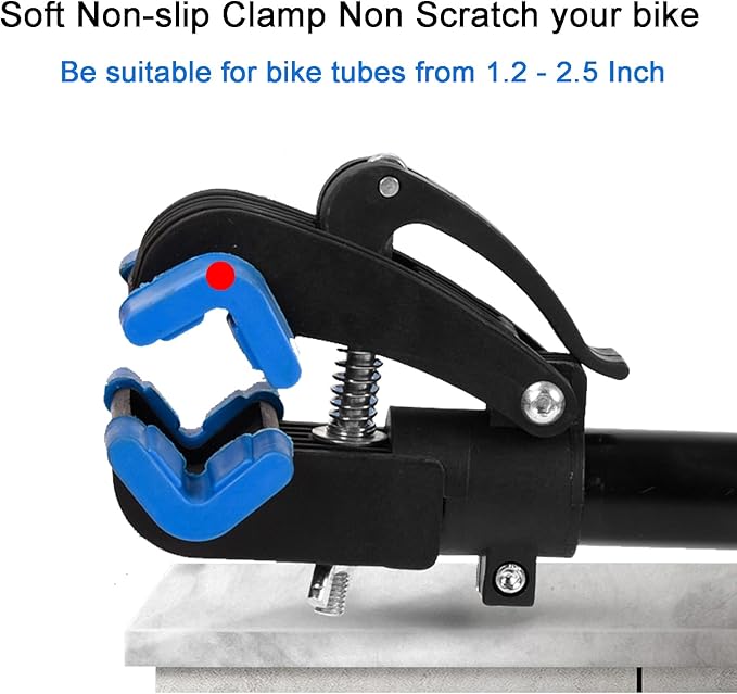 - Adjustable and Non-Damaging Clamp: The sturdy bike stand repair clamp accommodates bike tubes from 1.2 inch to 2.5 inch, with a soft non-slip silicone grip that protects your bike’s paint finish
