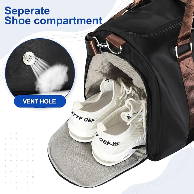 FIORETTO Womens Gym Tote Duffle Bag with Wet Pocket & Shoe Compartment, Sports Duffel Overnight Weekender Hospital Workout Carry on Bag for Girls, Ideal for Travel, Swimming, Dance, Ballet Black