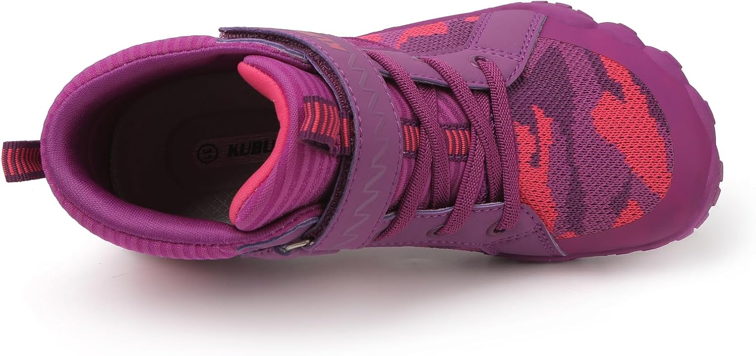 - Minimalist and Zero Drop Design: KUBUA kids high top sneakers feature a minimalist design that are both stylish and versatile. The zero drop design provides a barefoot feel, promoting natural foot movement and proper posture