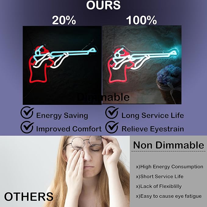 Man Shooting Neon Sign Nerf Sniper Rifle Light Up Sign Shooter Gifts Gun Player Light Sign Dimmable LED Sign for Gun Club Decor Man Cave Game Room 15.2"×9"