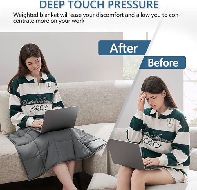 - Meet Your Various Needs: Our weighted blanket is perfect for adults, seniors, and pets. It can be used as a knee blanket for people with leg discomfort. When you are easily distracted at work, you can put heavy blanket over your shoulders, it can help you improve concentration. Body weighted blanket 5 lbs is perfect for people with "sensory needs" or "first-time users". Our weighted blanket is also a good choice if your pets are afraid of "rainy days"