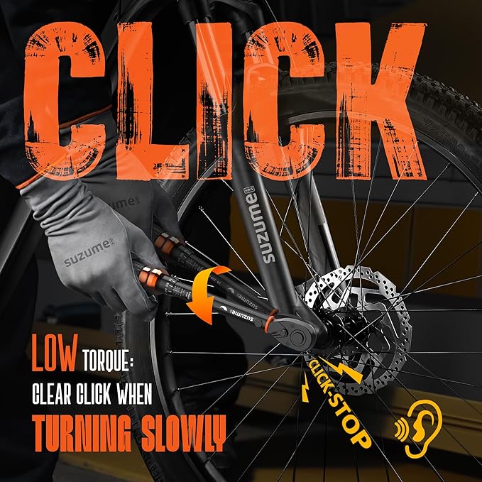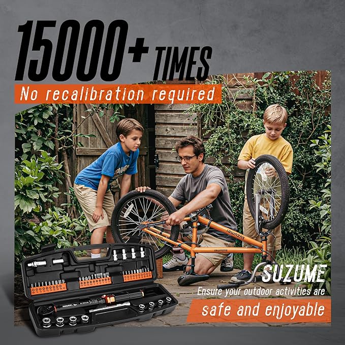 - [HIGH ACCURACY] SUZUME bike torque wrench set equips you with 1/4 torque wrench, the torque wrenches have gone through severe fatigue testing, this torque wrench set can withstand more than 10,000+ times of repeated use and still maintain an accuracy of ±3%, no need to annoyance about the re-calibration issue. Ideal for bike enthusiasts and professional repairmen.