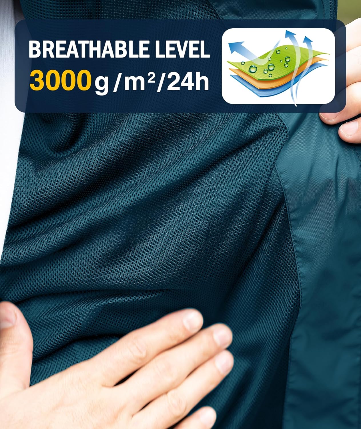 - Waterproof & Windproof Fabric: Men's rain jacket is composed of wind - resistant fabric, providing superior wind protection. This soft shell raincoat has a waterproof rating of 5000 mm, effectively preventing rainwater from entering and keeping you dry all day in overcast and light rain