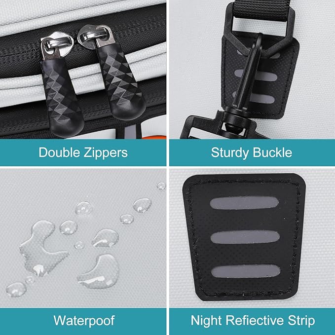- Both sides of the bag are designed with an elastic band, convenient for you to carry water bottles, umbrellas. With two 4L removable bike panniers (10.62 x 9.84 x 2.76 inch / L x W x H) to provide additional storage space to storage bike tools,towels and other items when cycling outside.