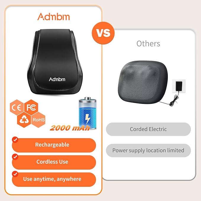 - COMPLETELY UPGRADED RECHARGEABLE MASSAGER: Please make sure the product is fully charged before using it for the first time. Please note that the product cannot be operated while it is charging. The Admbm massager stands out from traditional massagers that require a power outlet, as it operates on a rechargeable battery. This feature allows for convenient use in various settings, whether at home in bed, on the sofa, in the office, or while traveling