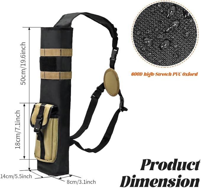 - [SIZE]: 50*14*8 cm/19.6*5.5*3.1 inch.This quiver can hold up to 24-30 arrows at once. It is made of high quality 600D High-stretch PVC Oxford fabric that resists everyday use and regular wear and tear very well