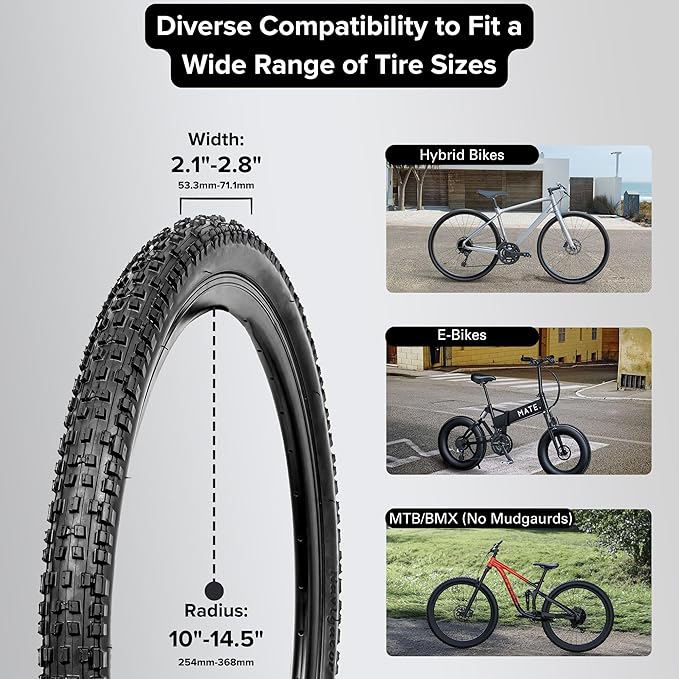 - Compatibility - Bike wall mount fits most Road and Hybrid Bikes, Small Mountain Bicycles, eBikes and BMX Bikes. Fits tire with of 2.1"-2.8", Wheel Diameter 20"-29". Not suitable for bikes with fenders or mudguards.
