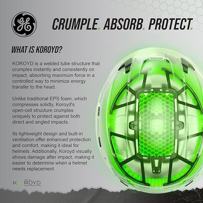 GE Safety Helmet: ANSI Type 2 Class G & E, Advanced Impact Technology, Ultra Comfortable Memory Foam, Heat Stress Reduction, Compatible with Accessories, Adjustable Size OSHA Approved