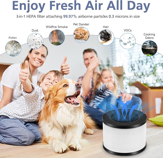 - 3 STAGE FILTRATION: Our TZ-K1 hepa replacement filter adopts 3-in-1 filtration system, includes Pre-filter, HEPA filter and activated carbon filter. Attaching 99.7% of the airborne particles such as hair, fine dust, pet dander, smoke and odors