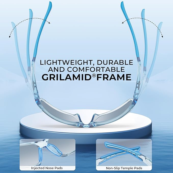 • KEY FEATURES – Impact-resistant polarized 1.0mm TAC lenses reduce glare, Block 100% of harmful UVA and UVB rays, Oleophobic and saltwater resistant lens coatings protect mirror finish, Full wrap frame design, Lightweight, durable, and comfortable Grilamid frames, Non-slip temple pads.