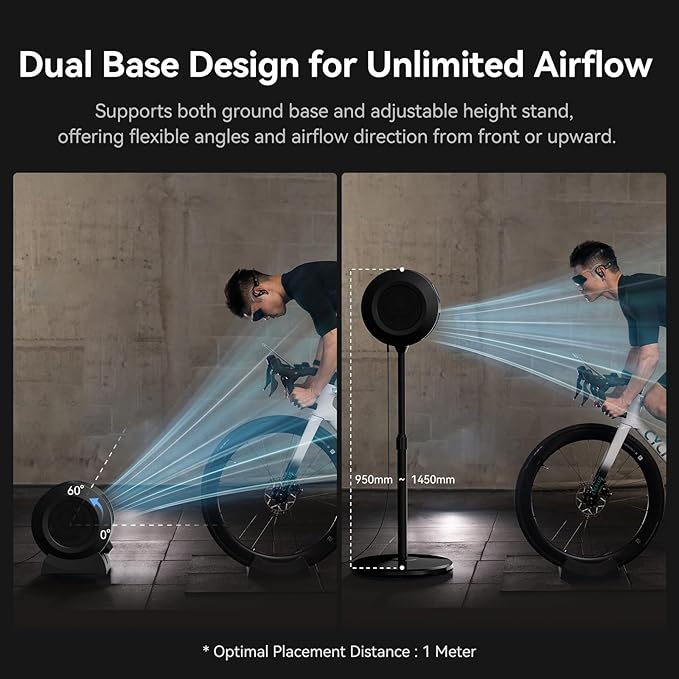 - 【Dual Base Design, Unlimited Airflow】It supports both ground base and adjustable height stand, offering flexible angles and airflow direction from front or upward. (Optimal Placement Distance: 1 Meter)