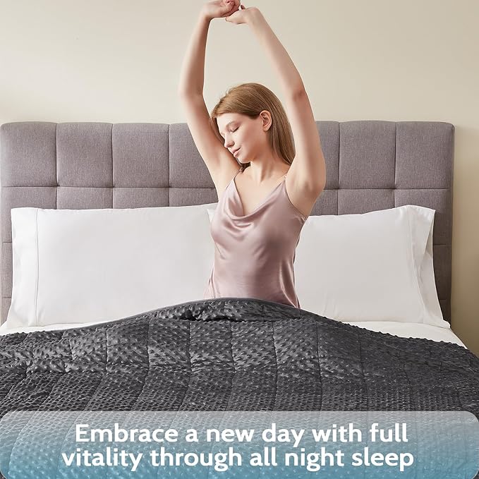 - PREMIUM MATERIAL: The weighted blanket is made of soft breathable minky material and filled with 0.8-1 mm non-toxic hypo-allergenic glass beads, suitable for all seasons. This minky dots weighted blanket could providing a cozy and warm sensation in the winter. Our minky dots weighted blankets are designed with bubble dots to give you an extraordinary tactile experience with their raised dots for added comfort