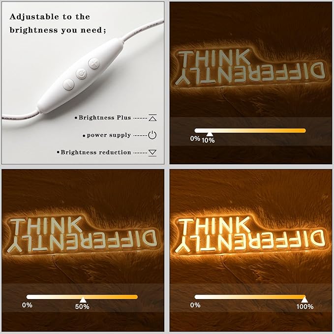 - Safe&Durable:Think differently neon sign is made of high-quality acrylic and LED light strips. The letter neon light material is safe and durable, and will not harm your health