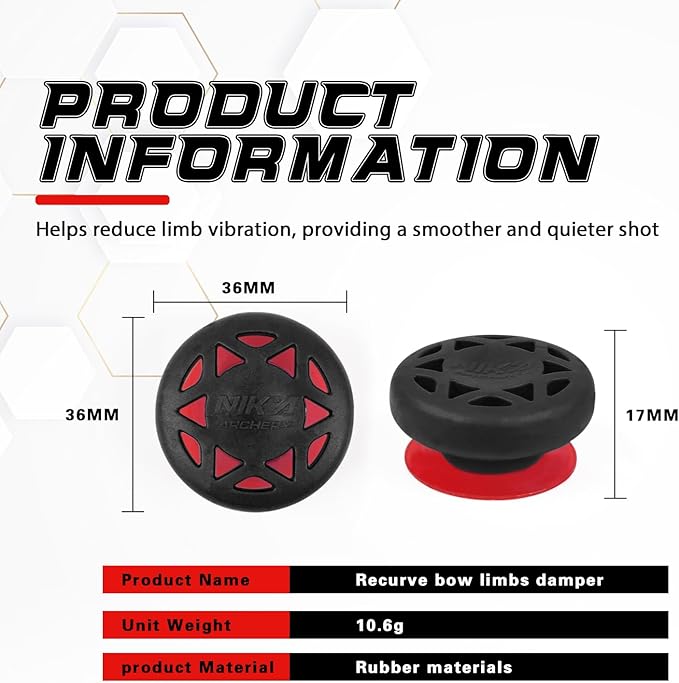 - Reduce vibration: Superior vibration and noise reduction for solid-limb recurve bows Helps produce a smoother and quieter shot by greatly reducing vibration caused from your limbs.