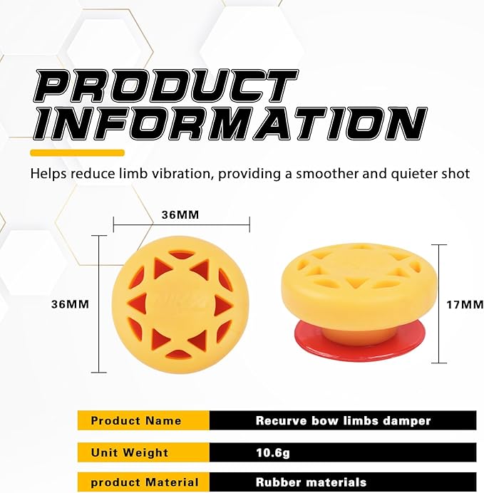 - Reduce vibration: Superior vibration and noise reduction for solid-limb recurve bows Helps produce a smoother and quieter shot by greatly reducing vibration caused from your limbs.