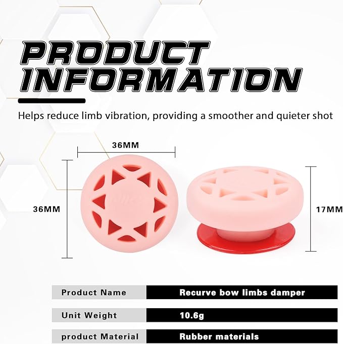 • Reduce vibration: Superior vibration and noise reduction for solid-limb recurve bows Helps produce a smoother and quieter shot by greatly reducing vibration caused from your limbs.