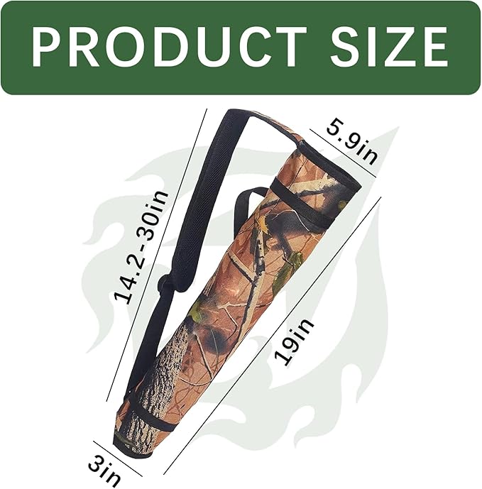 - Adjustable:The arrow holder length: approx. 18in, the opening diameter: approx. 3in. Fits up to 30 arrows. The straps of Arrow Quiver can easily be adjusted from 13" to about 30" to fit Youth and Adults.