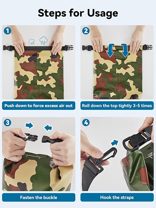 • Durable - Made of 0.02 in (0.5 mm) thick upgraded wear-resistant PVC material, it's suitable for all kinds of outdoor activities. Waterproof bag is well adapted to various weather and environment