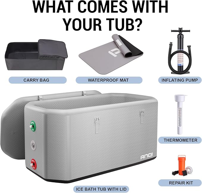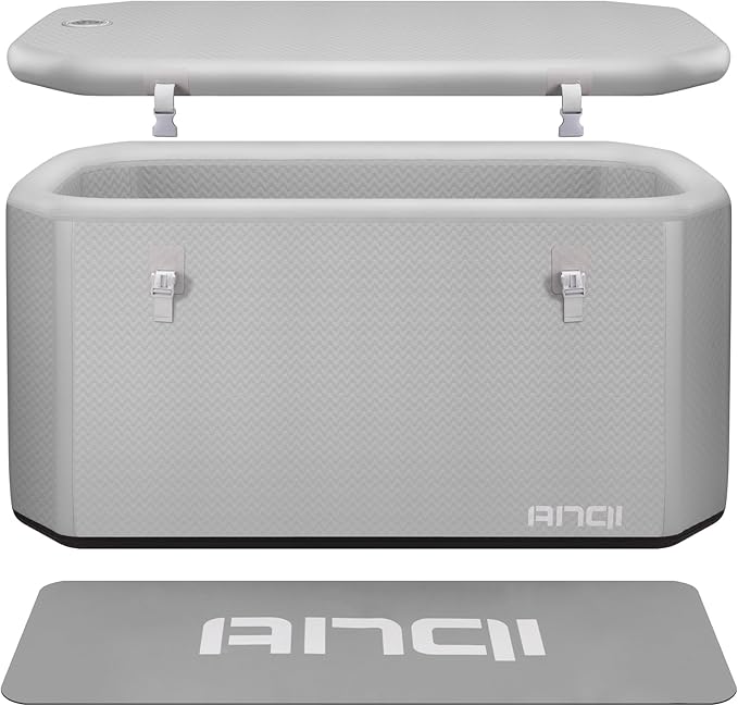 - ENJOYABLE USER EXPERIENCE: Included with our ice pod tubs for cold plunge is an air pump for rapid inflation within five minutes. The easy-to-use valve allows for quick deflation. Pack it up in the included portable carry bag for therapy on-the-go. A water-absorbent mat ensures a safe, non-slip surface as you step into rejuvenating cold water therapy.