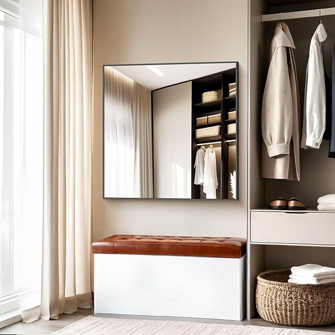 Bathroom Mirror,48x48 inch Large Wall Mirror for Bathroom Wall Mounted,Black Rectangle Wall Mirrors,Square Mirror for Living Room,Farmhouse, Bedroom Entryway, Horizontal/Vertical