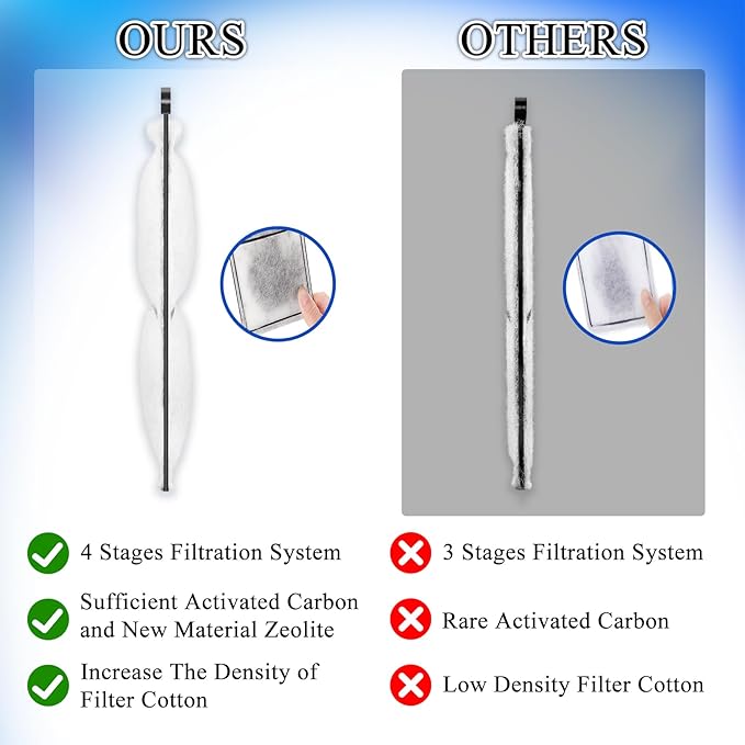 - 【Efficient Water Purification】: Our filter cartridge consists of double high-density cotton, activated carbon, new filter media-Zeolite. Double high-density cotton can filter impurities and debris from the water.3 times activated carbon can effectively absorb 99% of the debris and odors. Zeolite further absorbs heavy metals and balances PH.