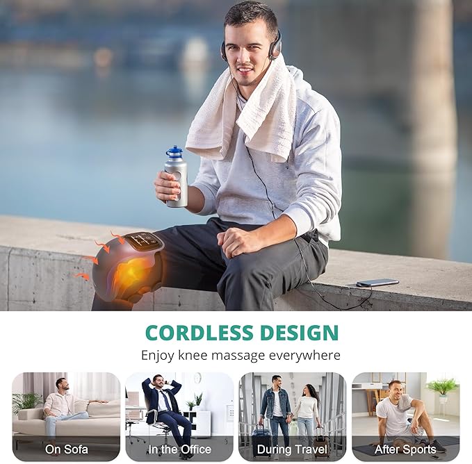 - Convenient Design with No Cords: You may get a soothing knee massage whether you're at home, at work, or on the go thanks to this wireless heated knee massager. The large LED touch screen of the Medcursor cordless knee massager is also easily readable and easy to use