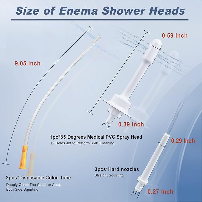 - 【Versatile and Comfortable】: Equipped with 3 types of nozzles and a 3.94ft hose, this colon cleanse kit provides comfort and relaxation during the enema therapy.