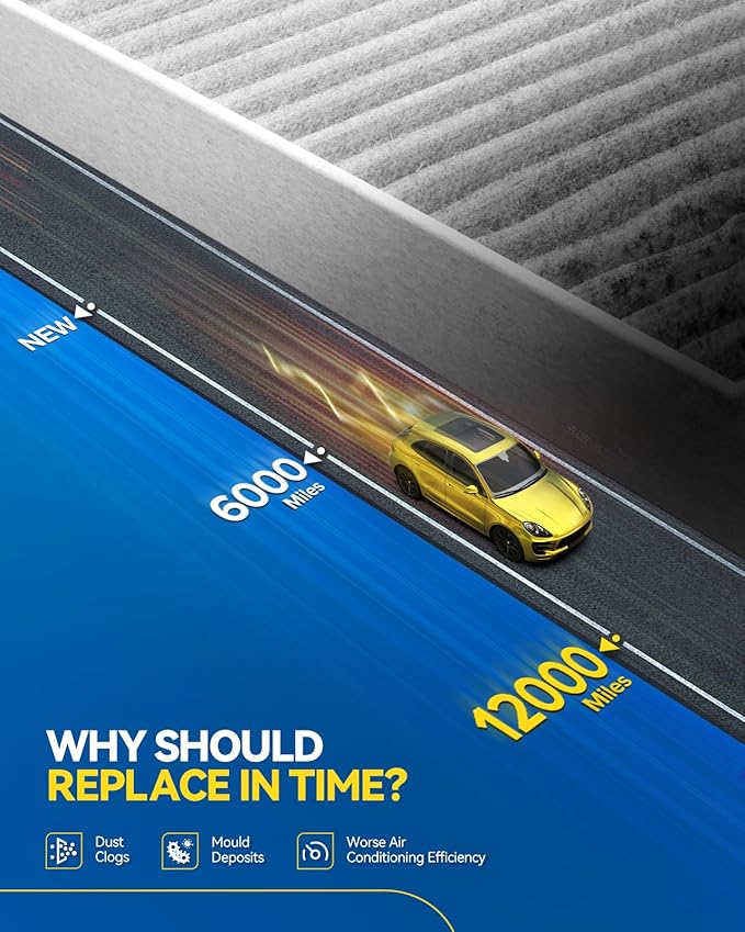 - [Warm Recommend]Replace every 12 months or when it drives to 12,000 miles. If you often drive in heavily polluted areas and muddy roads, it is recommended that you replace them frequently to keep the air fresh in the car