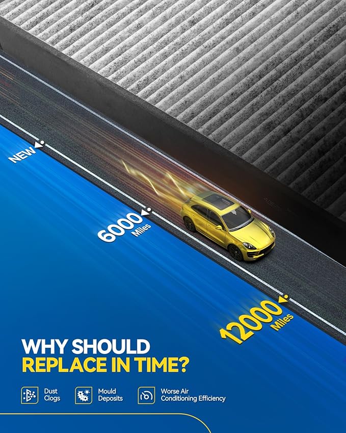 - [Warm Recommend]Replace every 12 months or when it drives to 12,000 miles. If you often drive in heavily polluted areas and muddy roads, it is recommended that you replace them frequently to keep the air fresh in the car
