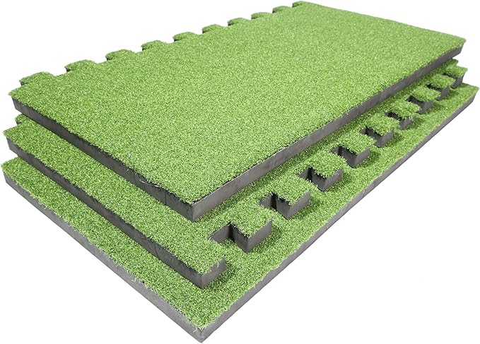 - Interlocking 5x3 Golf Hitting Mat: is the perfect solution for your home set up that can be easily stored, set up, or taken down quickly. The interlocking design makes the snap-fit secure and won’t slip with the movement of your swing.