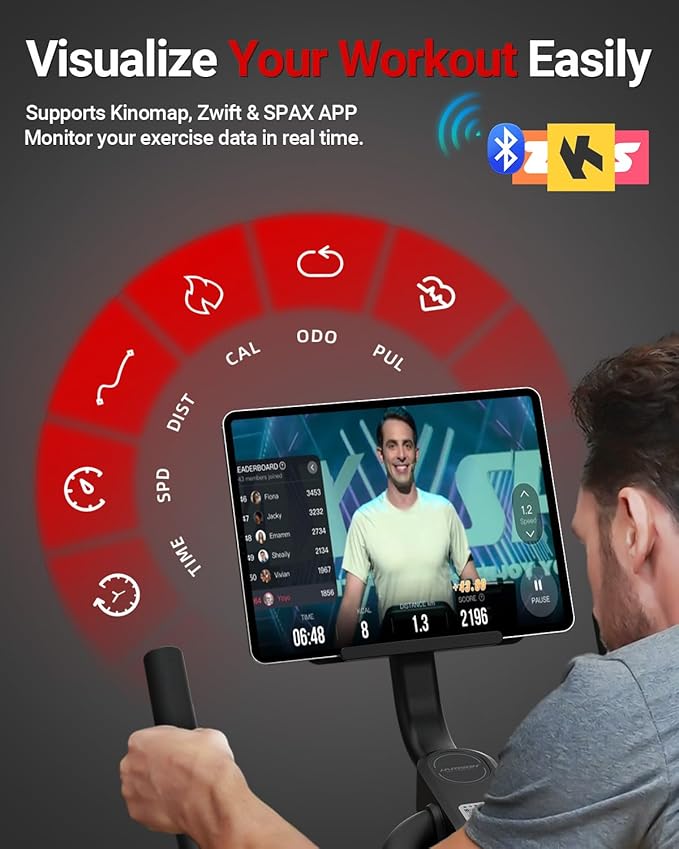 - HARSION Bluetooth Stationary Bike: The HARISON HR-X11 Magnetic Exercise Bike integrates seamlessly with professional fitness apps to provide real route videos and expert classes. Workout smarter with HARISON Smart Technology. Real-time data such as time, speed, RPM, distance and calories burned can be monitored via the APP, allowing you to adjust the intensity of your workout based on your program