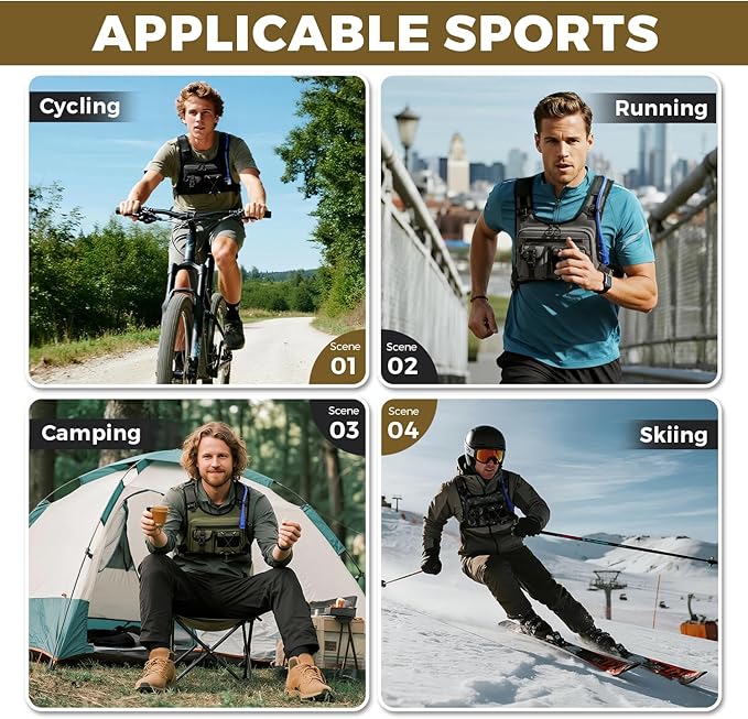 - 【Comfortable & Adjustable】 The adjustable straps on the chest bag guarantee that it fits you perfectly. The customizable fit ensures that the bag remains secure and minimizes unnecessary movement, especially during rigorous activity. The wide mesh shoulder pad helps to reduce the burden of your shoulder. This hydration vest backpack is made of lightweight material, ensuring that the added weight does not hinder your performance. The design emphasizes comfort and is suitable for prolonged wear.