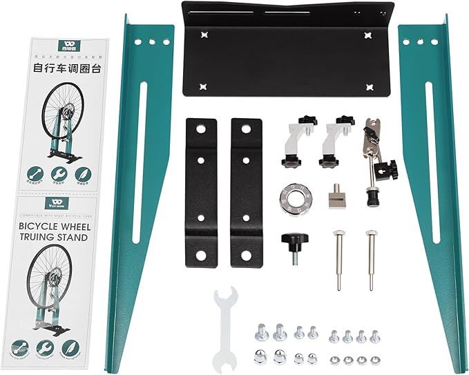 - [Professional Cycling Tyre Bracket] The brackets on the left and right side can determine if the tyre has a large offset, which can help you make adjustments for smoother tyre rotation. The combination of telescopic head and brake disc adjusting bracket can be used to detect whether the rim is round or not, thus ensuring your driving safety.