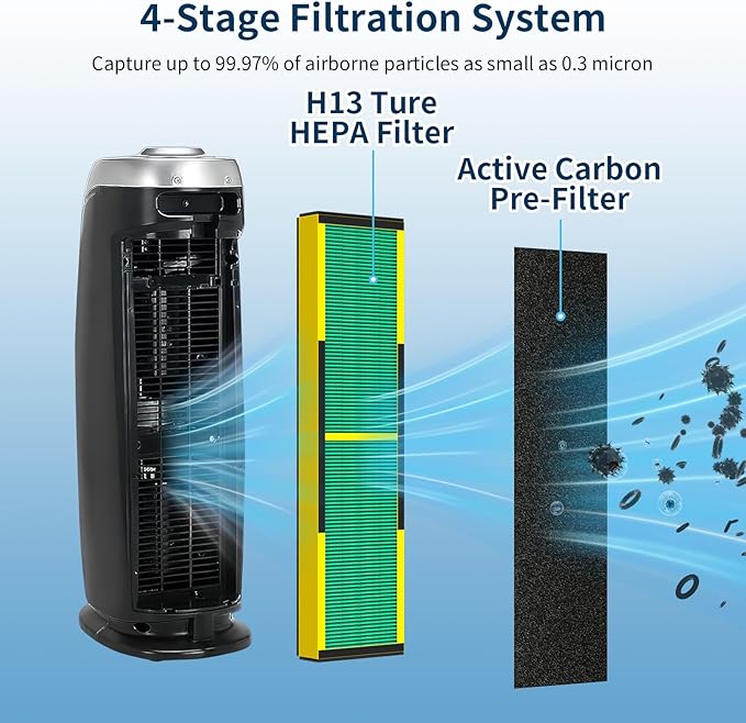 - Package Including: The package includes 2 H13 true HEPA filters and 6 activated carbon pre-filters for germ guardian air puri-fier, which are cost-effective and can save you money. Maintaining the best air quality in your home or office is very important for your health and happiness.