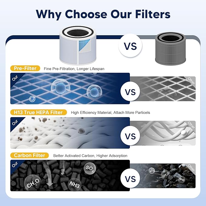 - π°-ππ‘-π ππππ§π₯ππ§ππ’π‘ - Our advanced core 300 filter replacement for levoit air purifier adopts 4-Stage High Efficiency Filtration System ( β Dual-Side Pre-Filter β‘H13 Grade True HEPA Filter β’Activated Carbon Filter with ARC Formula) to take away 99.97% of substances as small as 0.03 microns, automatically improving air quality and promoting better health and well-being for you, ideal solution for homes with pets, smokers, open layout kitchens