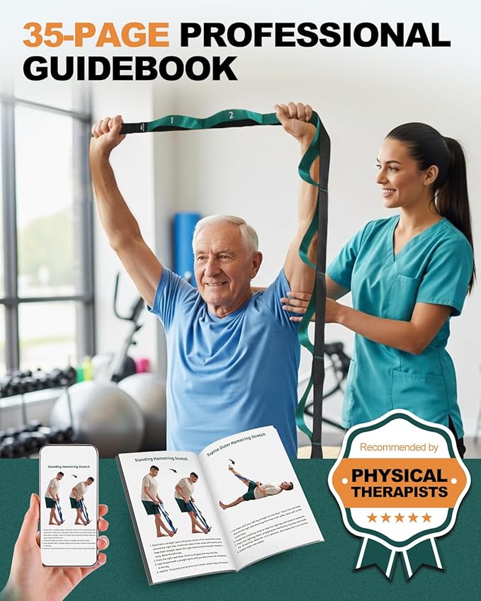 - [Professional Guidance] Our yoga straps for stretching include poster, covering basic home therapy movements, while the 35-page manual offers detailed instructions