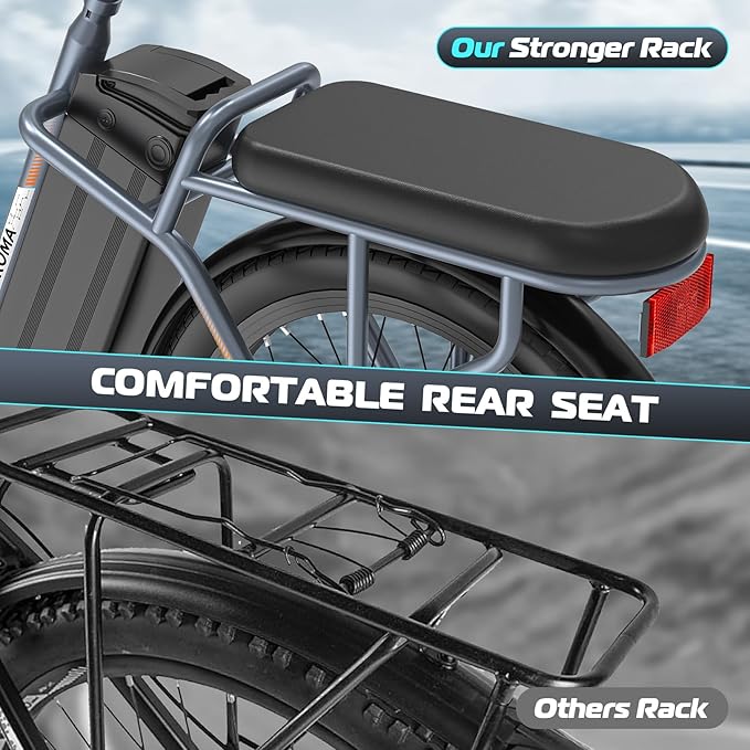 - 【Removable Battery】Enjoy long-distance riding with the 48V lithium-ion battery, allowing for up to 25 miles per charge for 3 hours. The adult electric scooter is equipped with the BMS system that provides 14 types of protection, making our battery safer and more cycle life. This electric bicycle have two charging methods, remove the battery to charge or direct charging on the bike, ebikes for adults is your best choice.
