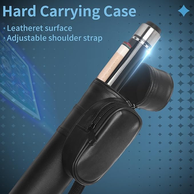 - High-quality Extension Cue: Equipped with a 9-inch carbon fiber pool cue extension cue, which is retractable and adjustable in length. The carbon fiber extension cue adds extra flexibility to your game, allowing you to easily complete long-range shots
