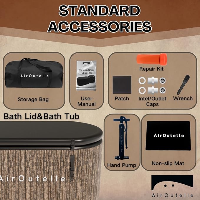 - COMPATIBLE WITH CHILLERS: The Airoutelle cold plunge tub can easily connect to a water chiller (not included). This setup automatically maintains the ideal cold water temperature, thus cutting ice costs. And it is also compatible with water filters, compressors, and physical therapy devices (not included). Both using a chiller and adding ice are effective ways to keep the water cold.