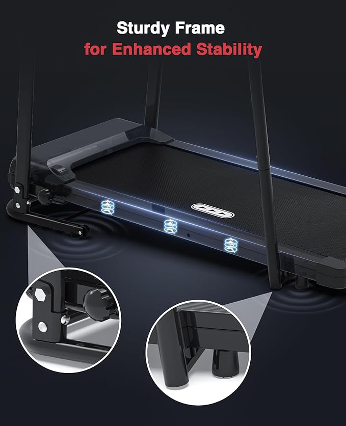 - 【Low-Impact Recovery Treadmill】- This walking treadmill is designed specifically for the elderly and those in recovery. The 5-layer shock-absorbing, anti-slip running belt minimizes joint impact and ensures stability during every step. With a minimum speed of 0.5 mph and precise 0.1 mph increments, it provides gentle, customizable exercise tailored to recovery needs.