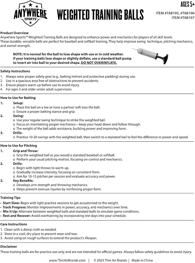 - Master Your Swing: Train like a pro using Anywhere Sports' 16 oz weighted baseballs. Designed to refine your swing mechanics, increase power, and improve hitting accuracy, each 2.85” ball delivers pro-level feedback. Ideal for consistent, results-driven practice sessions.