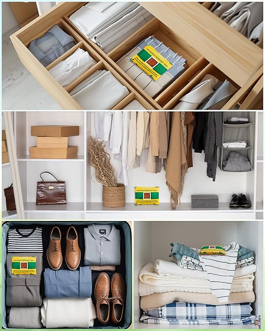 - Versatile and Practical Use: These rechargeable desiccant bags are perfect for a wide range of applications. Use them in cars, closets, basements, garages, storage areas, or any enclosed space that requires moisture control. Their versatility makes them ideal for protecting furniture, clothing, electronics, documents, and more, providing peace of mind wherever you need it
