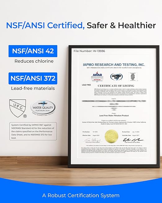 - Certified Purer Water: Waterdrop 10UE-SC is certified to NSF/ANSI 42 standards, ensuring enhanced water quality and taste by effectively reducing 98% chlorine, bad taste and odors. Tested by a third party laboratory, it also reduces PFOA, PFOS, sand, turbidity, sediment, and large particles, providing pure and safe water for your daily drinking and cooking needs.
