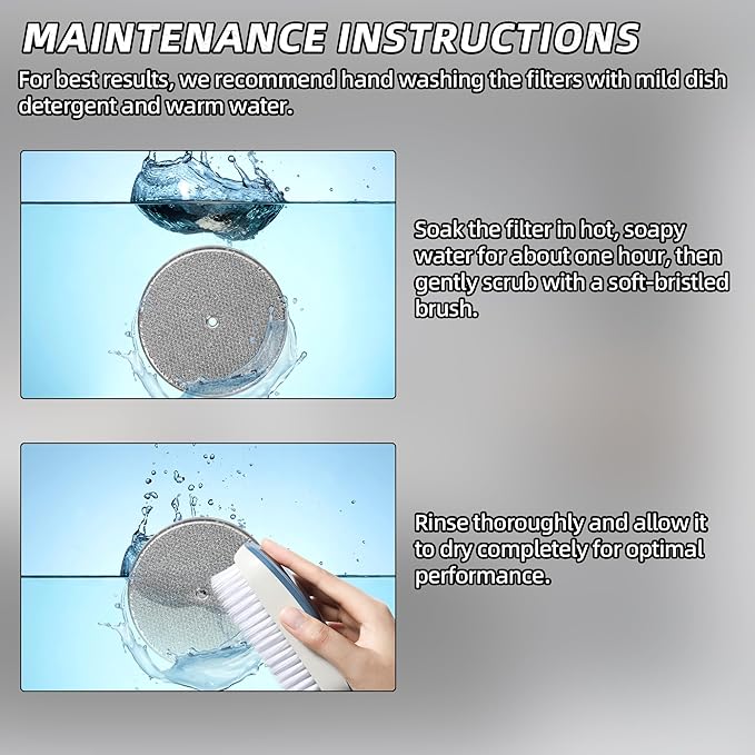 - Maintenance Instructions: For best results, we recommend hand washing the range hood filters with mild dish detergent and warm water. Soak the stove hood vent filter in hot, soapy water for about one hour, then gently scrub with a soft-bristled brush. Rinse thoroughly and allow it to dry completely for optimal performance