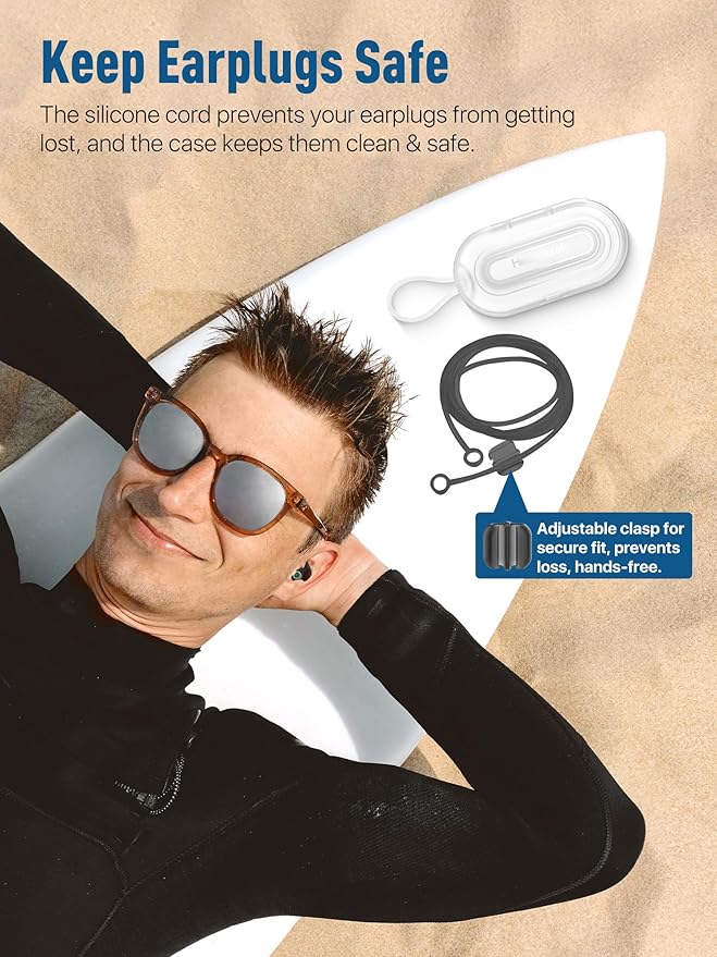 - Portable and Convenient: Swim Ear Plugs set come with a handy storage case, making it easy to keep your earplugs clean and organized. Lightweight and compact, they’re ideal for carrying to the pool, beach, or any water adventure, ensuring you’re always prepared