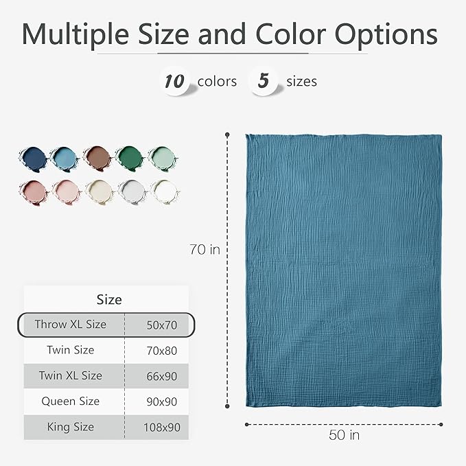 - Trendy colors: We offer the comfy gauze blanket in many colors to better match your bedroom, living room, or individual style. Features a natural wrinkle designs that complements farmhouse décor