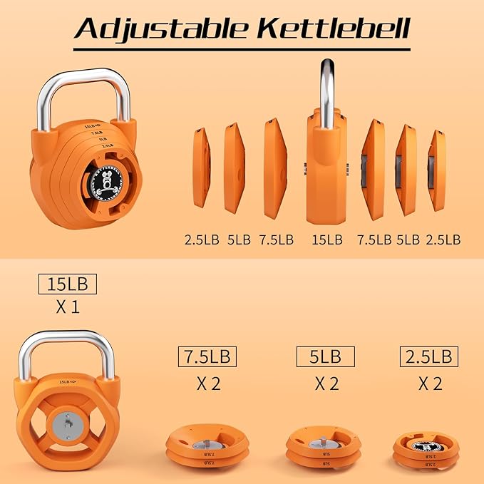 - ๐ฅใMore Weight OptionsใEach dumbbell plate is detachable, enabling users to configure their weights according to individual preferences and fitness levels. Choose from a weight range of 5lb, 15lb, and 30lb for dumbbell and barbell exercises, while adjustable kettlebell workouts can be adjusted to 15lb, 30lb, 40lb, and 45lb, providing options for everyone from beginners to advanced athletes.