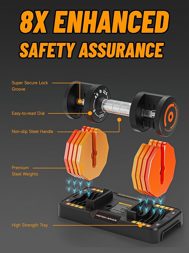 - 🥇【SAFETY DESIGN】With its innovative count weight plate design, it easily adjusts the weight by holding the handle and turning the pointer to the desired number. Our latest design includes 8 locking mechanisms, providing stability and ensuring safety during workouts.