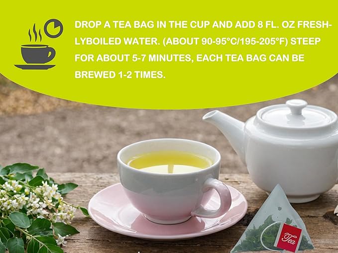 - 【Easy Brewing Instructions】: Brew each moringa tea bag with 300-400ml of 195-205°F (90-95°C) water for 5-10 minutes. Convenient and portable, enjoy a rich, distinctive, and aromatic herbal tea experience anytime, anywhere
