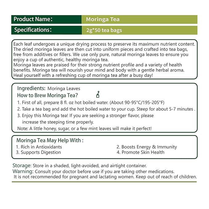 - 【Truly Powerful Herbal Tea】: Moringa tea offers a myriad of health benefits that make it truly exceptional. It not only has a significant effect on enhancing immunity and promoting digestion but also provides a natural energy boost.